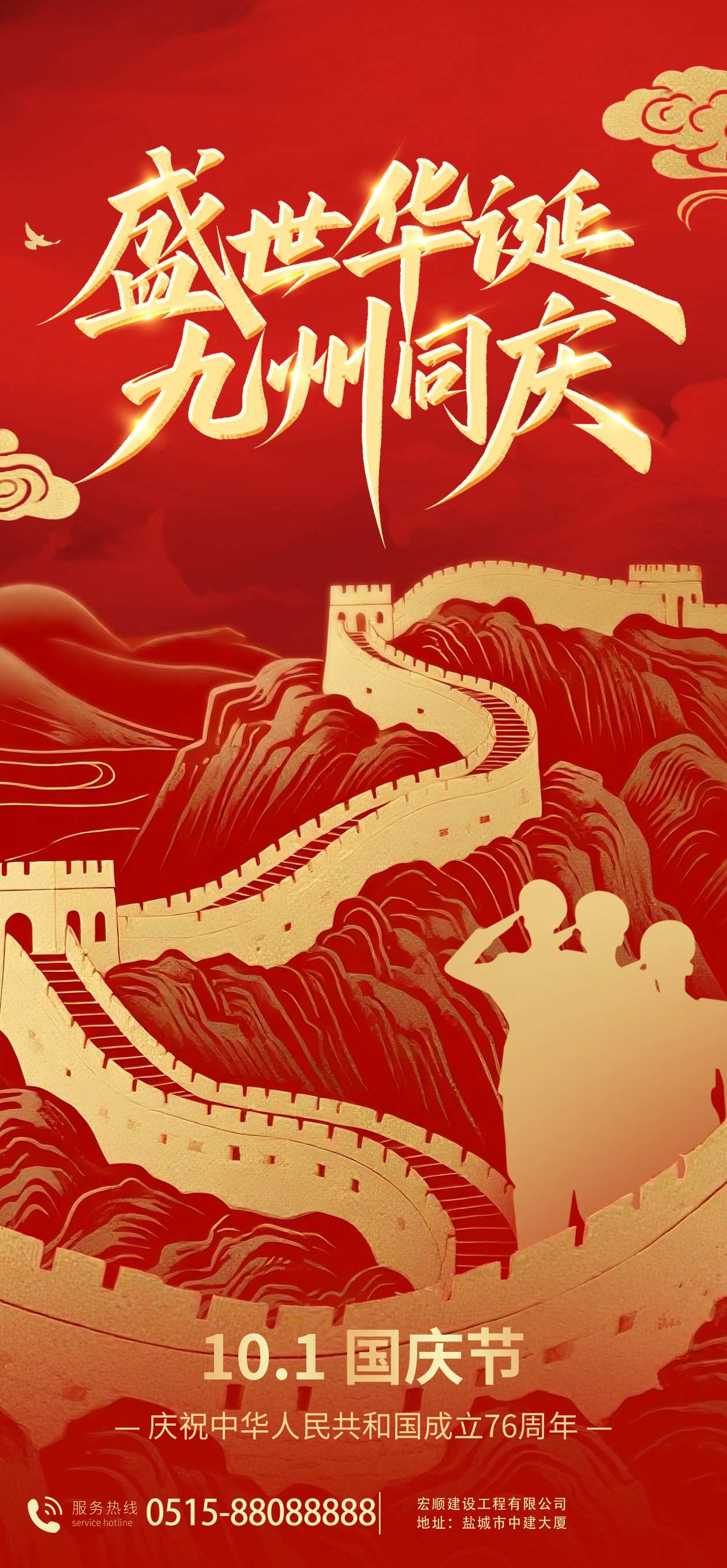作為城市建設的筑夢者,我們深知每一棟拔地而起的高樓都凝聚著建設者的汗水,每一條延伸向遠方的道路都承載著時代的夢想。在這個特殊的日子里,我們不僅要為祖國的輝煌成就感到自豪,更要為能參與國家建設而感到無比光榮。國慶長假將至,愿各位在享受美好假期的同時,也能感受到我們最真摯的祝福。無論是與家人團聚的天倫之樂,還是外出游歷的愜意時光,都愿您收獲滿滿的幸福與歡樂。讓我們暫別繁忙的工作,在秋日的暖陽中積蓄力量,以更飽滿的熱情迎接未來的挑戰(zhàn)。宏順建設將始終秉持"質(zhì)量為本、誠信立業(yè)"的企業(yè)精神,與您攜手共創(chuàng)美好明天。
