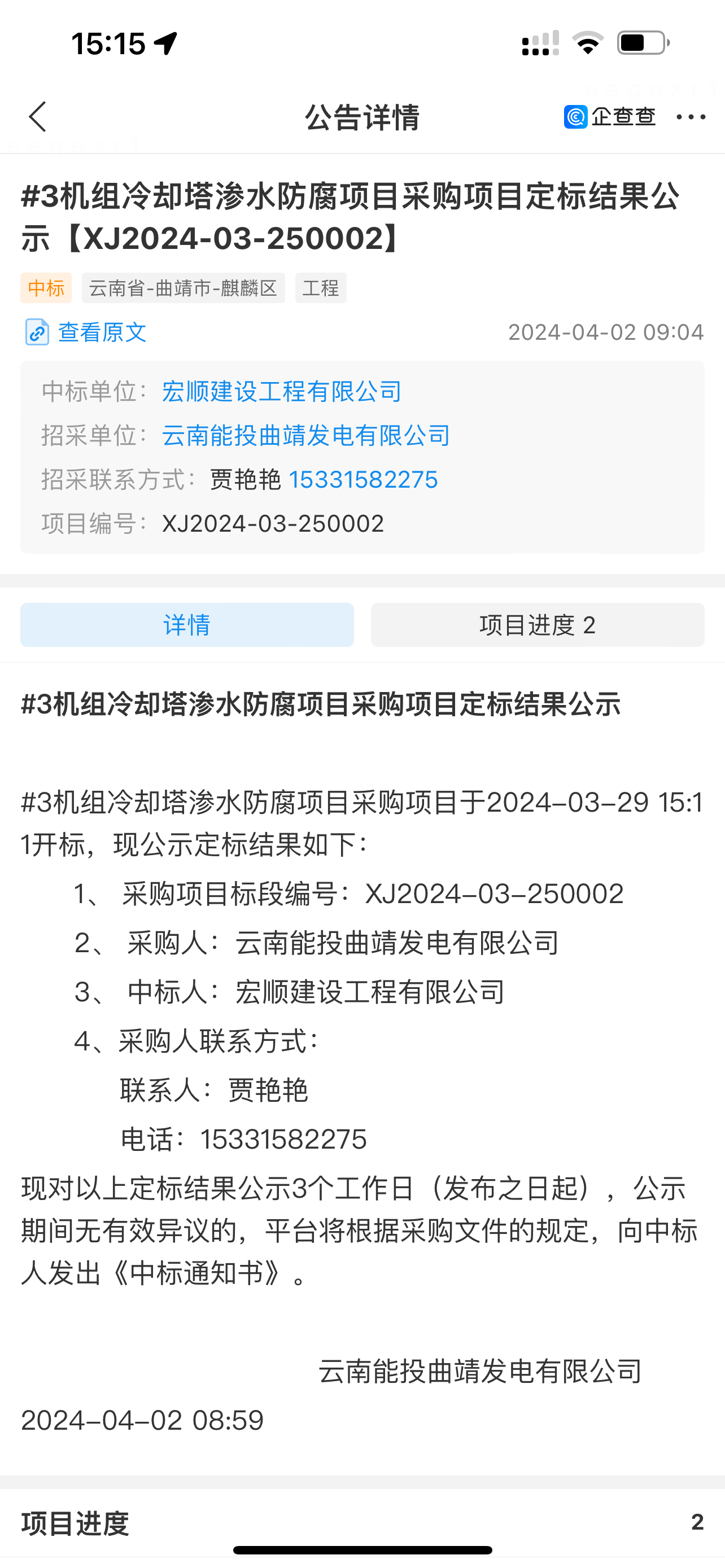 熱烈祝賀我公司中標(biāo)云南能投曲靖發(fā)電電廠(chǎng)機(jī)組冷卻塔滲水防腐項(xiàng)目